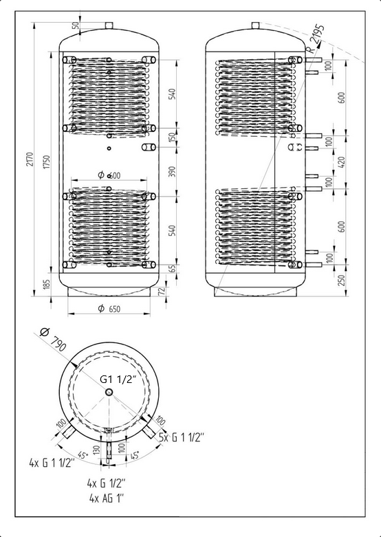 Akumulační nádoba KXT2 obsahuje 2 topné výměníky, kterými rozšiřuje nabídku užitných vlastností akumulačních nádob. Otopnou vodu je možné ohřívat pomocí slunečních kolektorů, tepelného čerpadla a dalších zdrojů.
