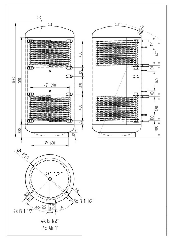 Akumulační nádoba KXT2 obsahuje 2 topné výměníky, kterými rozšiřuje nabídku užitných vlastností akumulačních nádob. Otopnou vodu je možné ohřívat pomocí slunečních kolektorů, tepelného čerpadla a dalších zdrojů.
