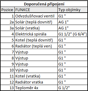 Akumulační nádoba KXT1 obsahuje topný šnek, kterým rozšiřuje nabídku užitných vlastností akumulačních nádob. Otopnou vodu je možné ohřívat pomocí slunečních kolektorů. Tato nádoba umožňuje též napojení na více tepelných zdrojů, např. krbová kamna.