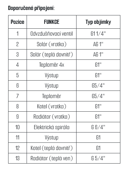 - Provozní teplota / tlak: 0-95 °C / 3 bar