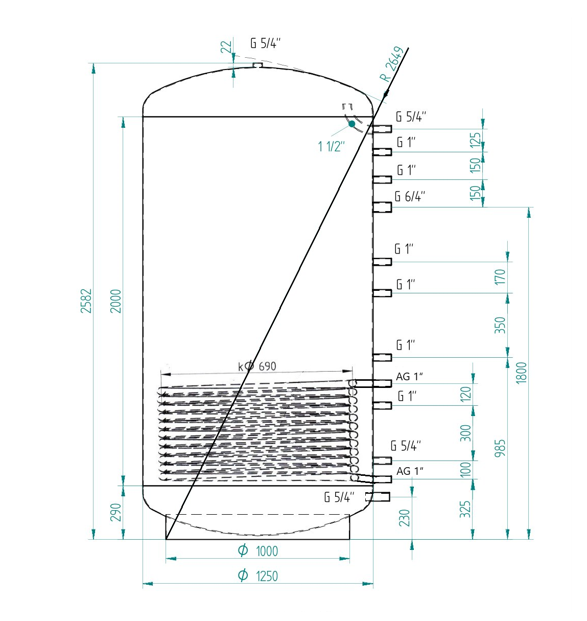Detailní popis Akumulační nádrž 3000l MG1, d1250