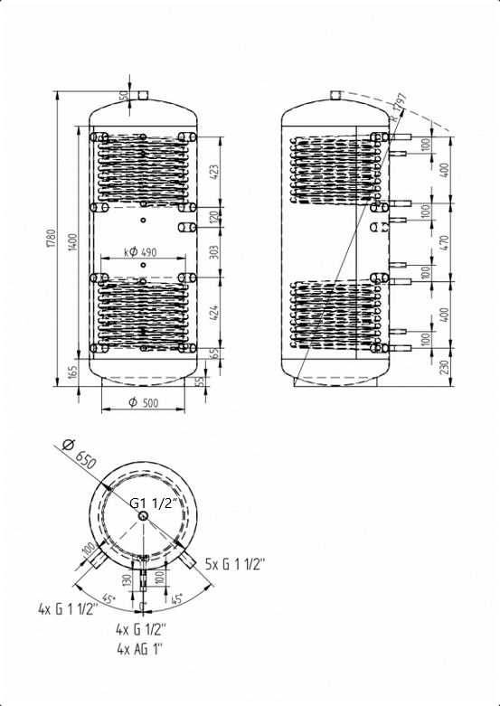 Detailní popis Akumulační nádrž 500l KXT2, d650